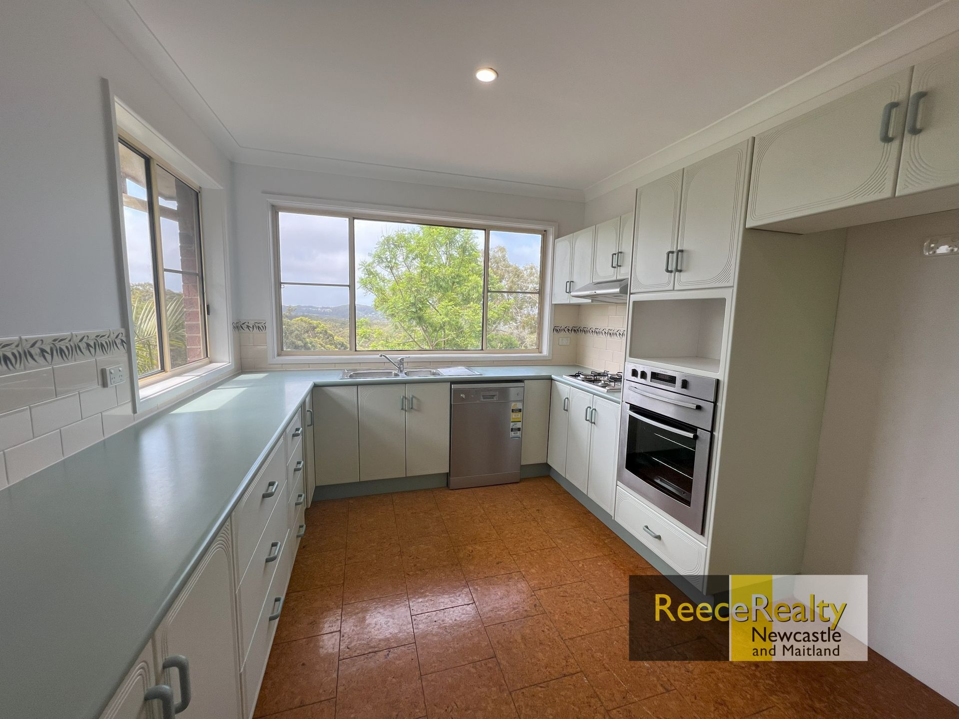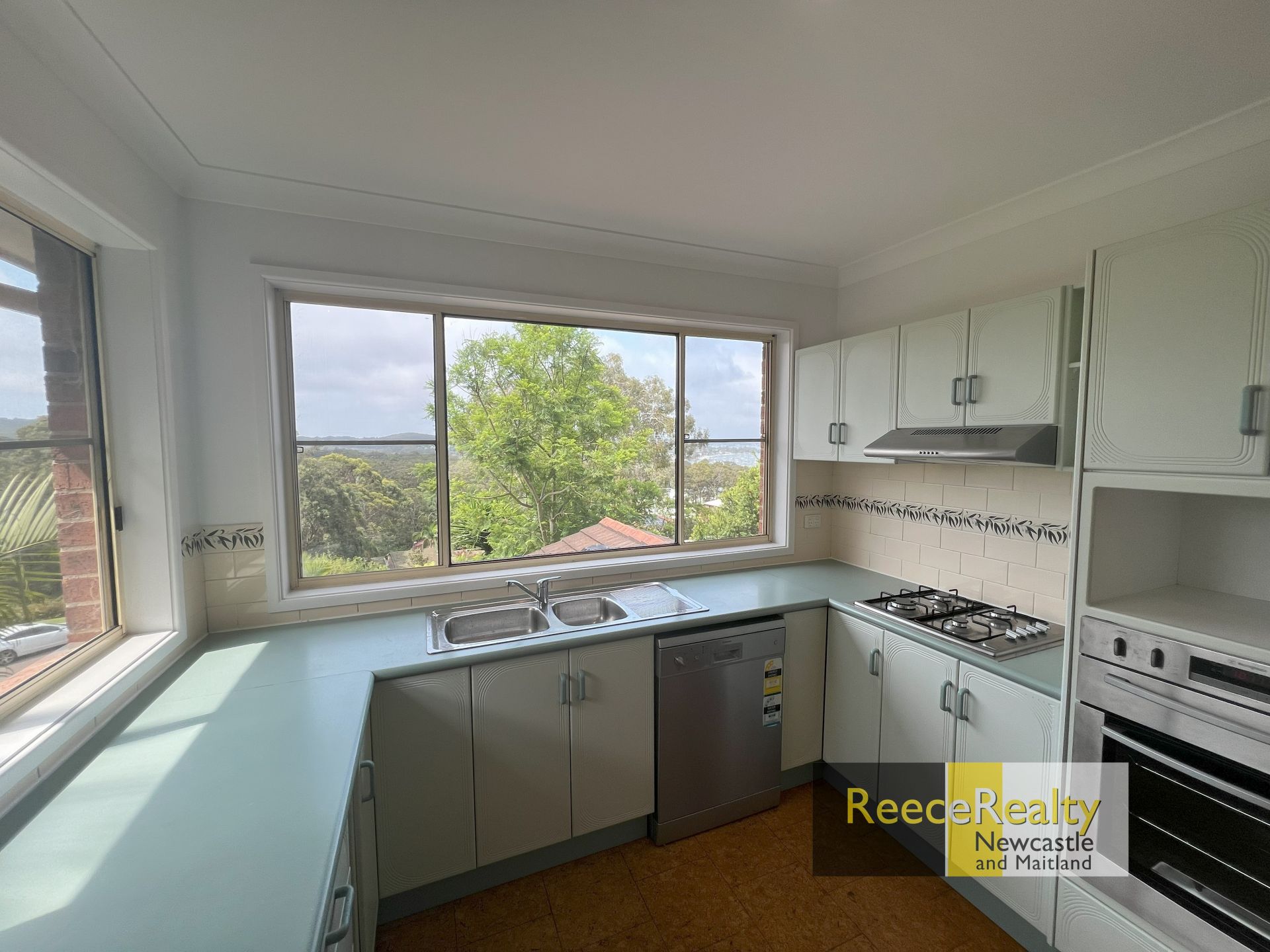 The kitchen is fitted with gas cooking and has windows overlooking the stunning lake views.