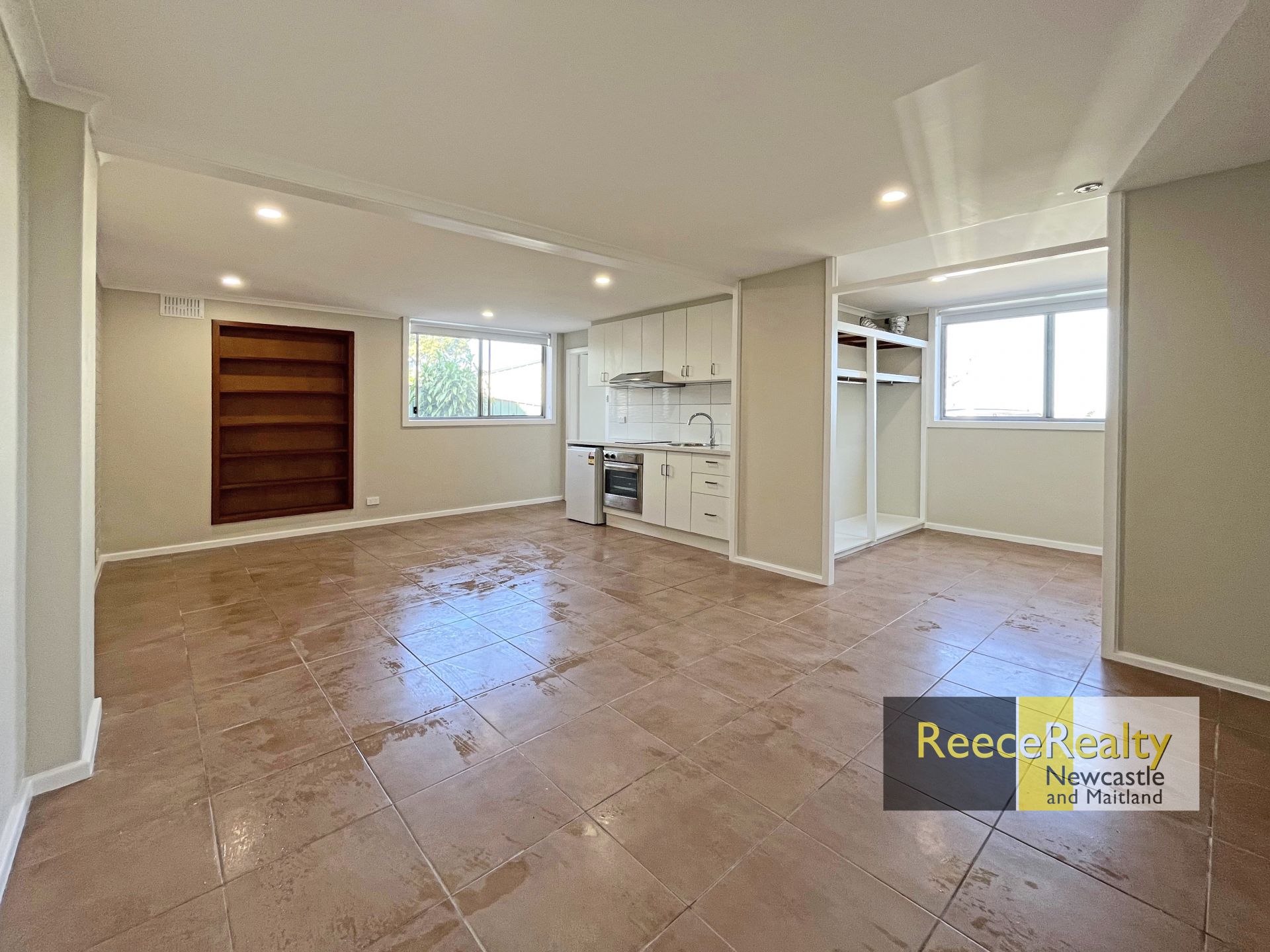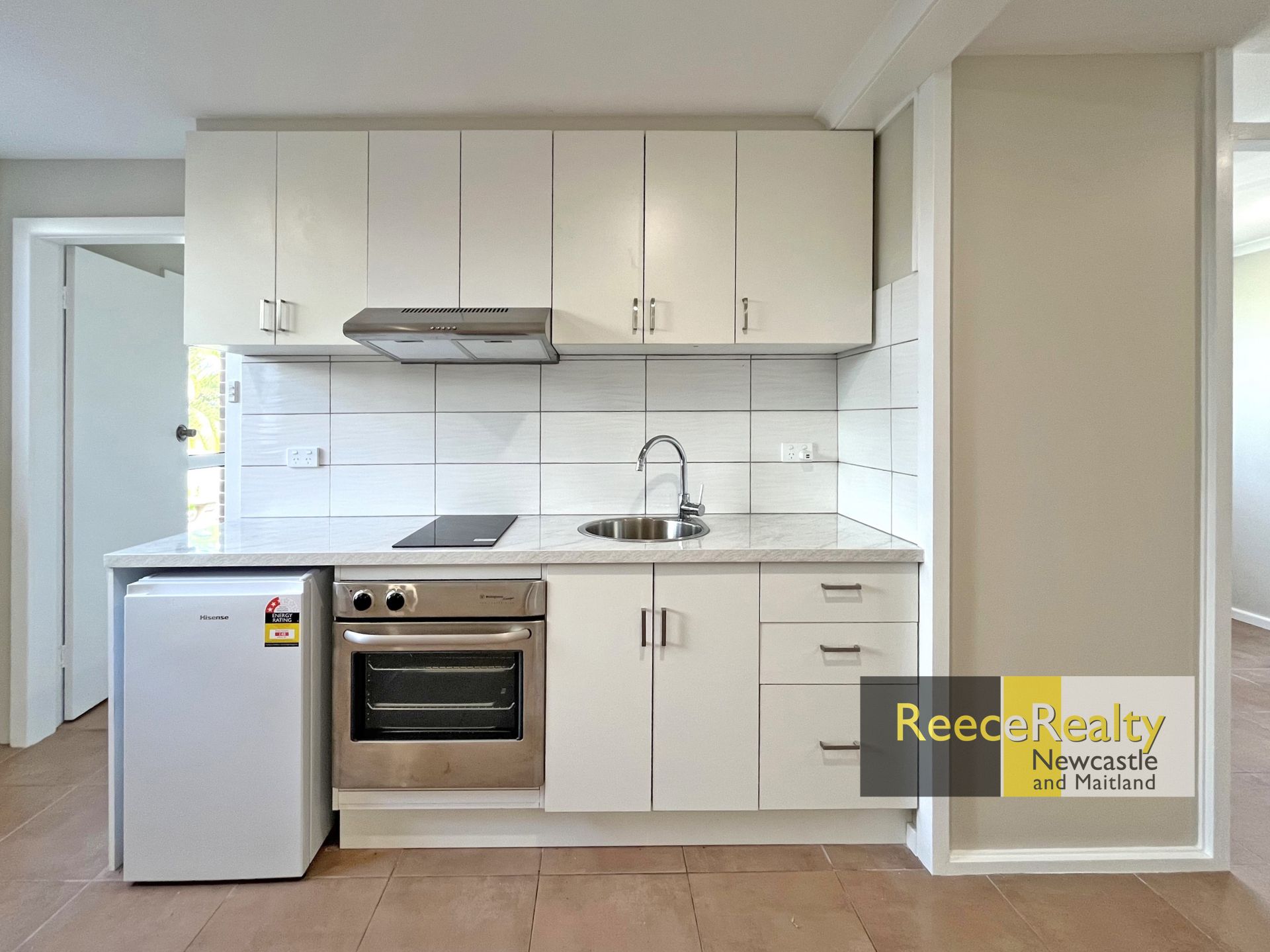 The open plan living and kitchen space upon entry features an electric oven and 2 plate induction cooktop with a fridge already provided!