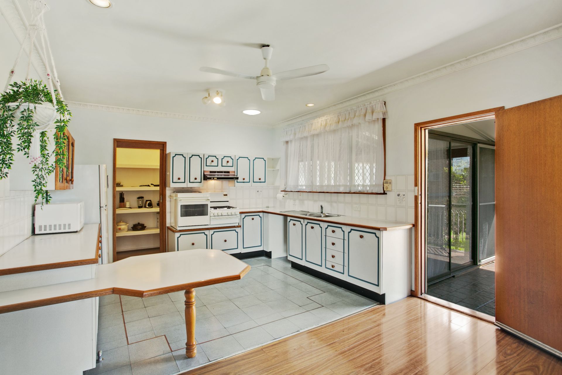 Large home in Warabrook with an open plan kitchen and dining room. The kitchen offers gas cooking a large walk-in pantry, spacious breakfast bar and ample cupboards and storage space.