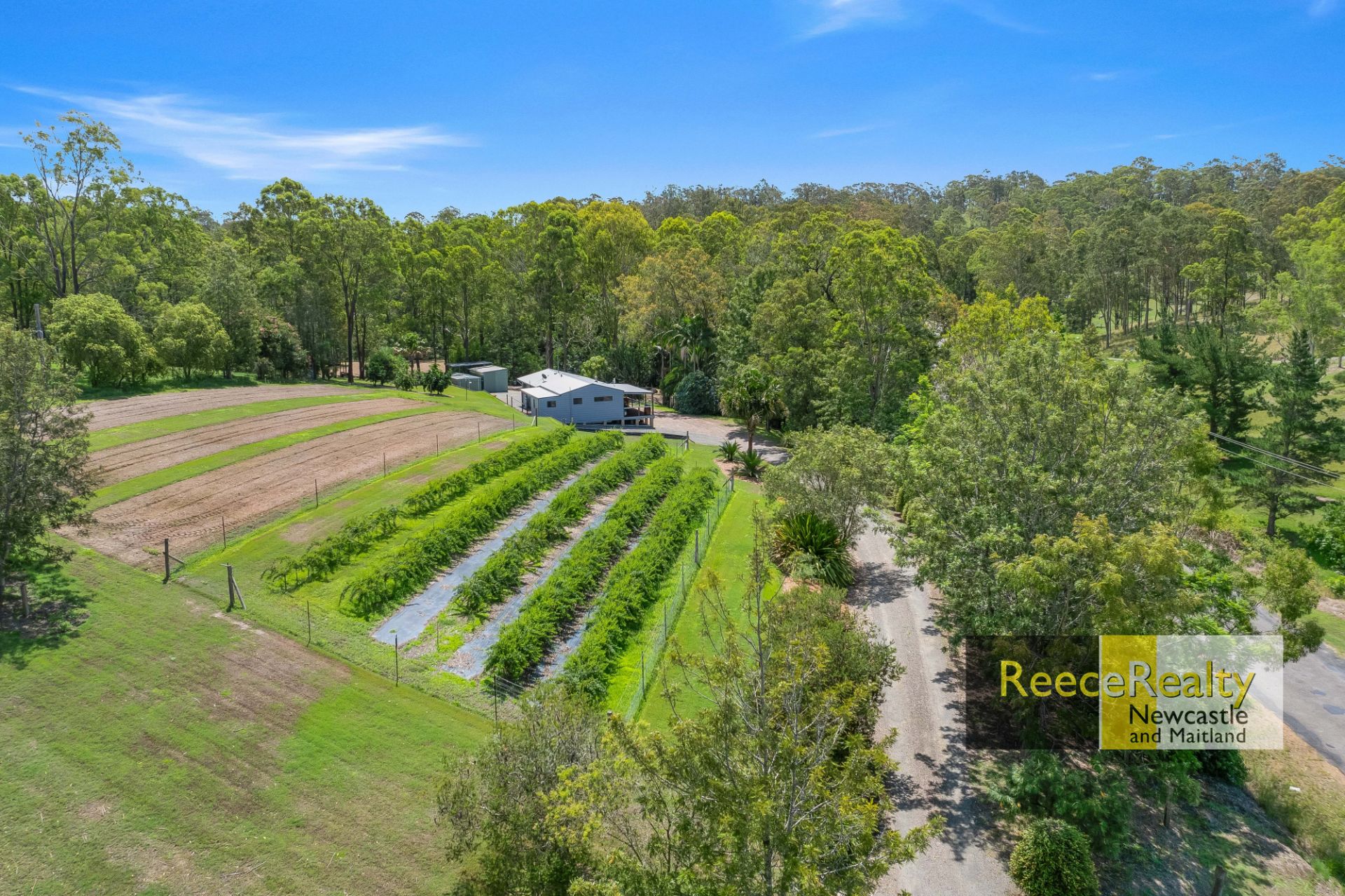 This property has been a commercial strawberry farm and recently a rose farm with improved land area including an integrated watering system from a pump off the dam. The dam pump comes with a water licence as it feeds the Williams River. Water has never been an issue as this dam has a weir run off and is the lowest of three, capitalising on overflow from the two higher dams located on adjoining properties. The home is also connected to town water.