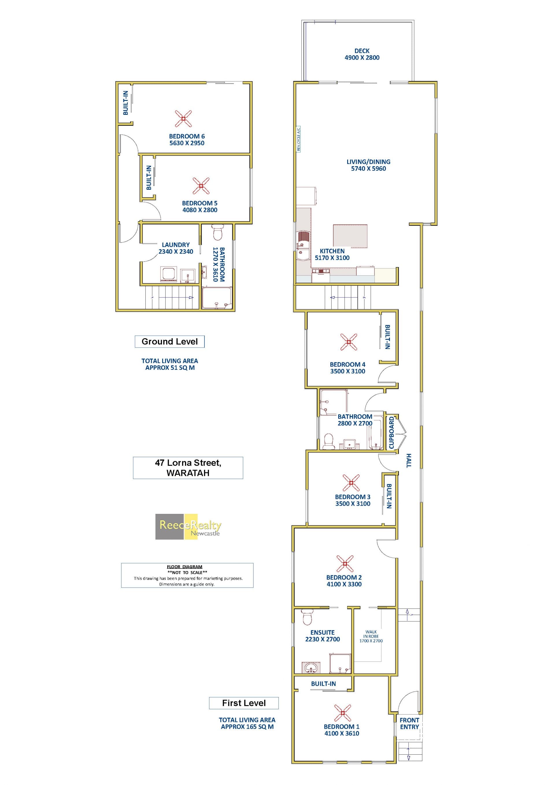 • Six generous bedrooms, all with built-in robes and ceiling fans